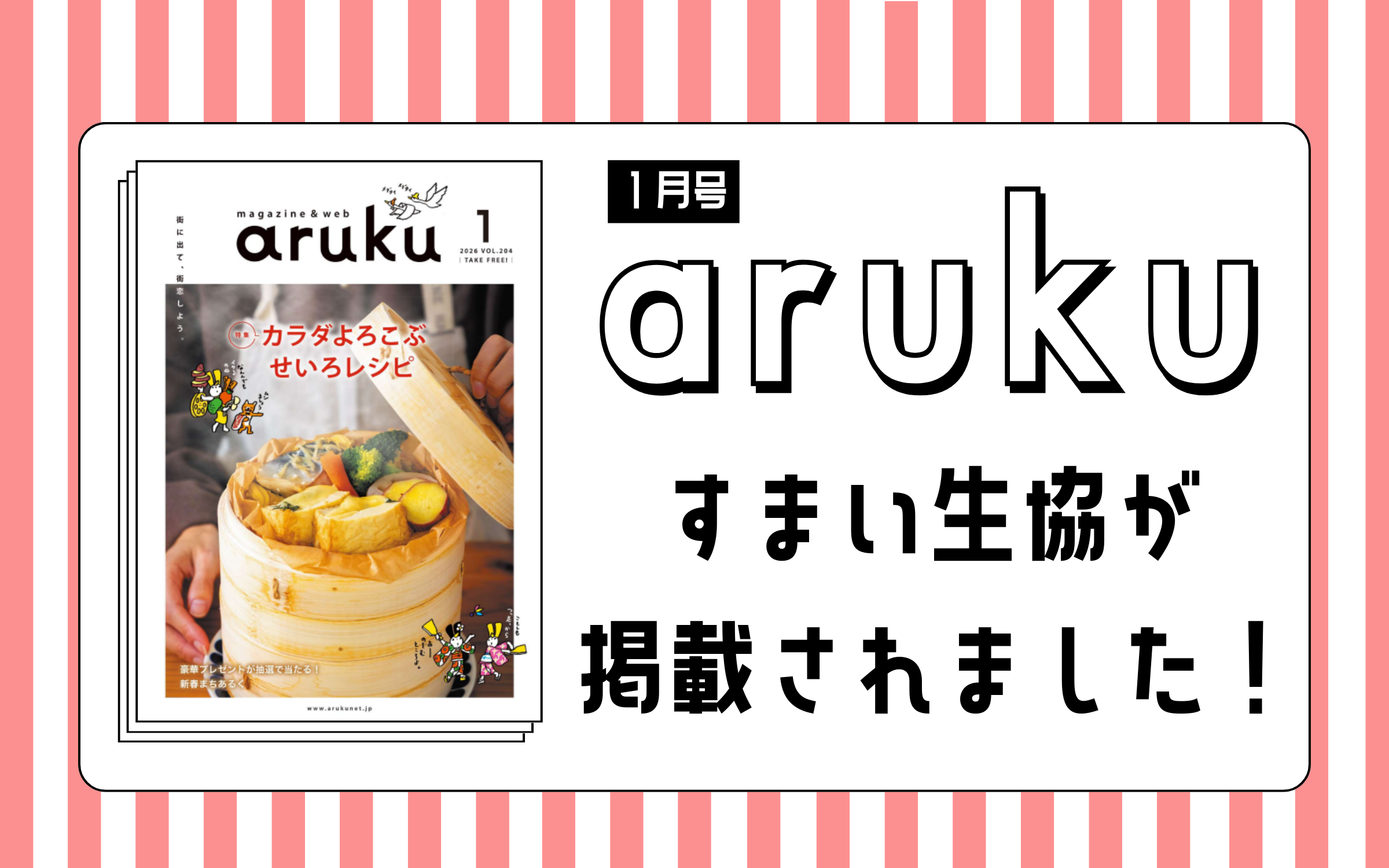 こんにちは!すまい生協です。 福島のフリーマガジン「aruku」1月号にすまい生協が掲載されました! 見かけた際は、ぜひお手に取って23ページをチェックしてみてください☆