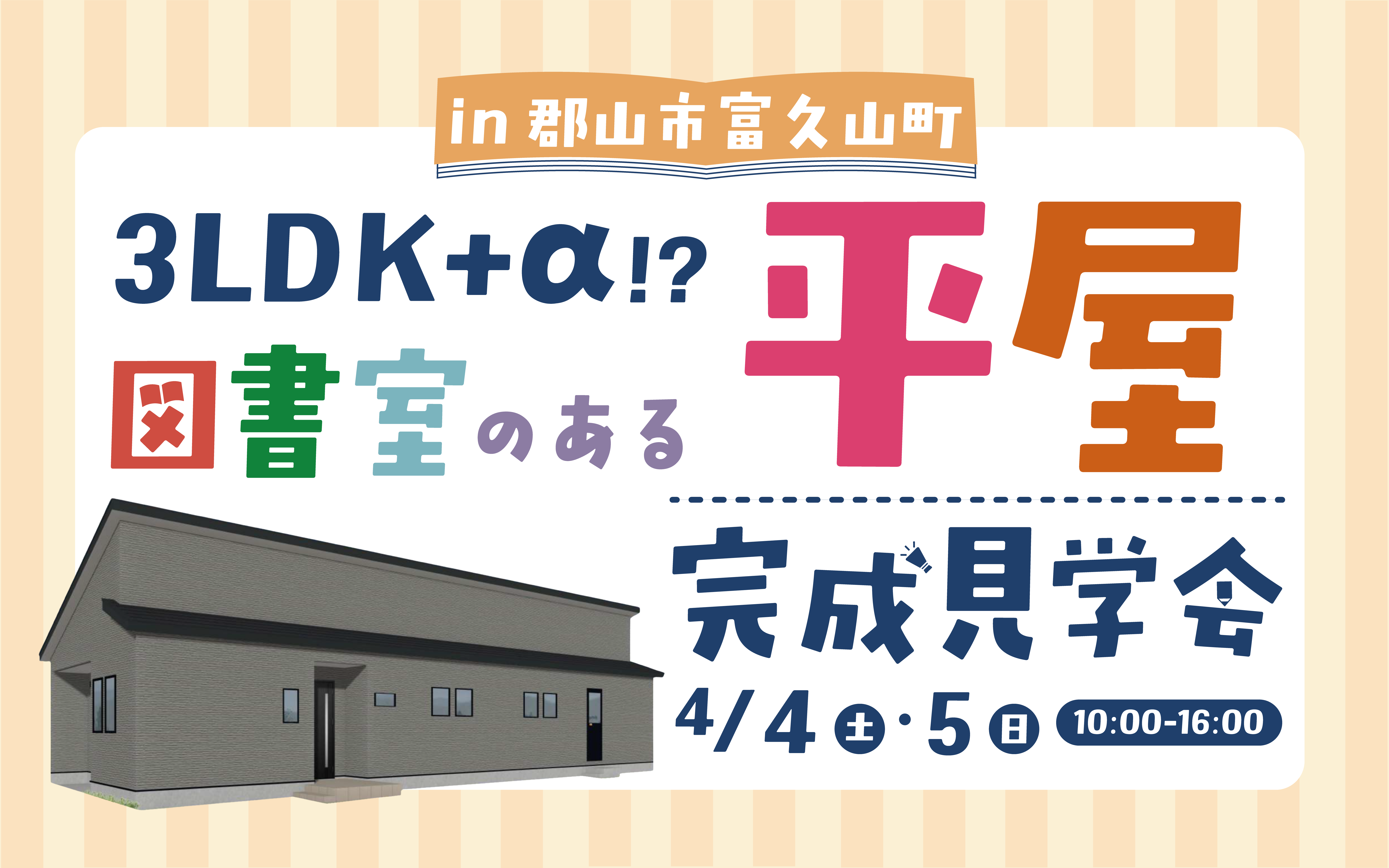 こんにちは!すまい生協 郡山本店です! 郡山市も春の陽気が感じられる季節になってきましたね。 新しい生活が始まるこの時期、マイホームへの夢を膨らませている方も多いのではないでしょうか? 本日は、郡山市にて開催されるこだわりの「平屋」の見学会についてご紹介いたします。 今回の見どころは、なんと...