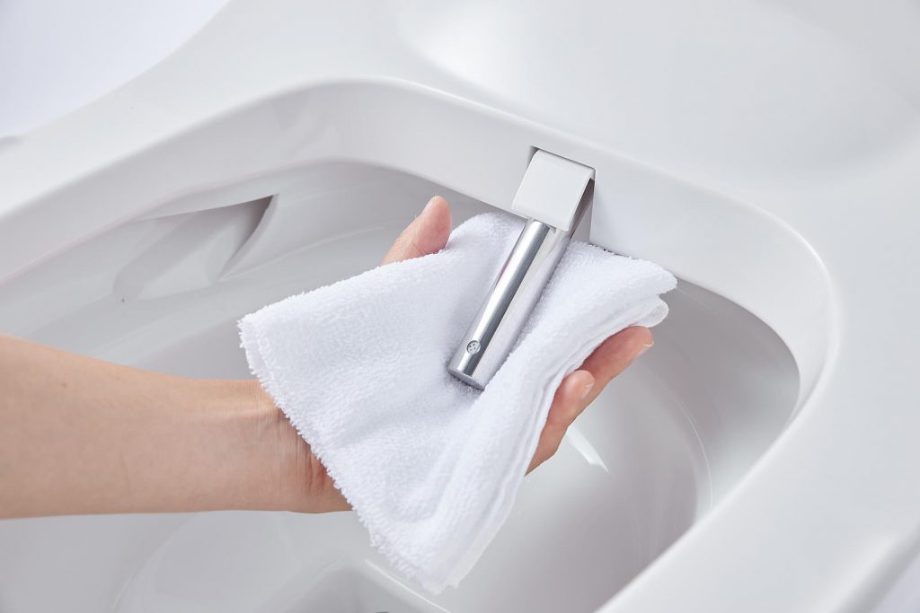 継ぎ目がなく汚れにくいステンレス製の温水洗浄ノズルです。