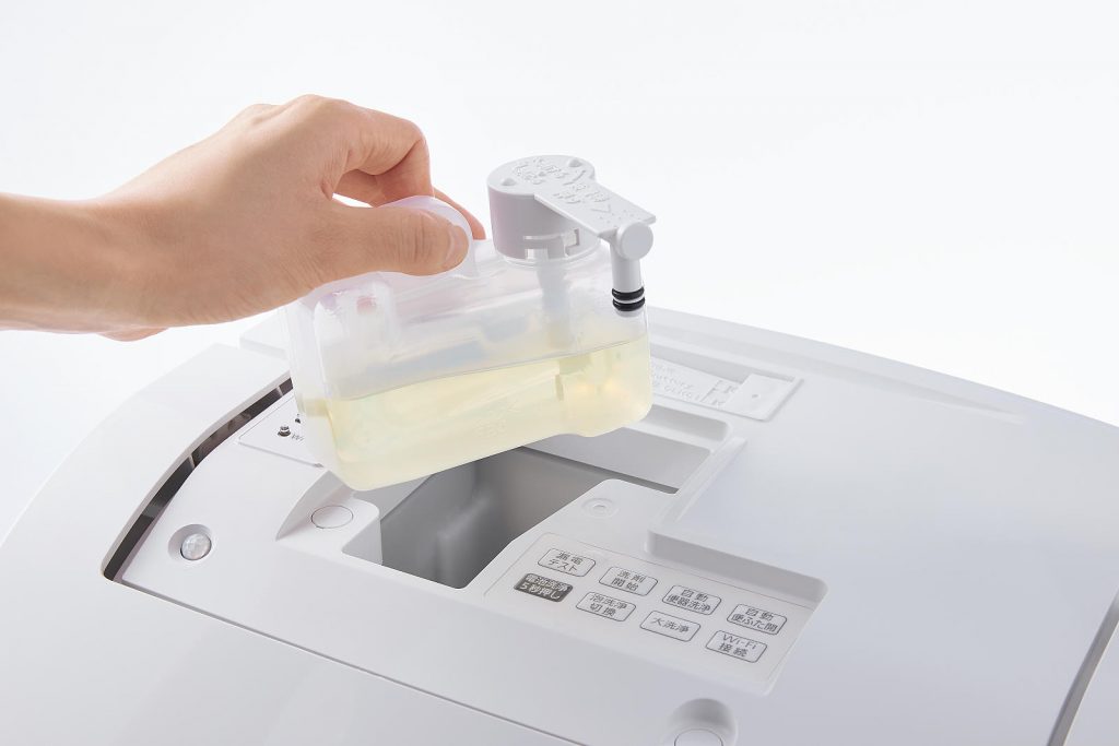 本体上部からタンクを取り出せるので、無理ない姿勢で洗剤を補充できます。