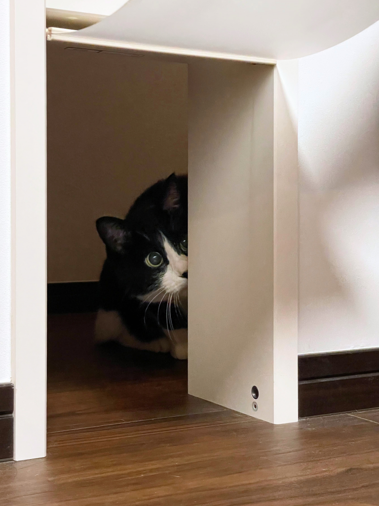 階段下のスペースや、カウンター下などを活用して、「猫専用トイレブース」を作りましょう。