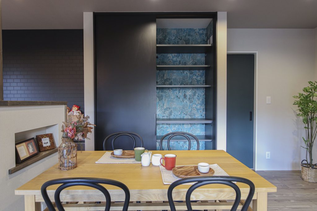 ダイニング近くに収納を設ければキッチン家電やコップなど気軽に取り出すことができます。