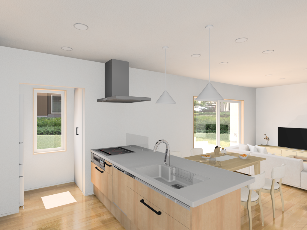 ・食料のストックやキッチン家電を収納できるパントリー付き
