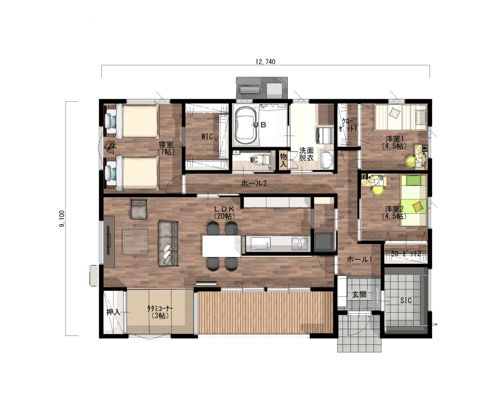 今回は、約31坪【3LDK 畳コーナーのある平屋】の間取りのご紹介です。