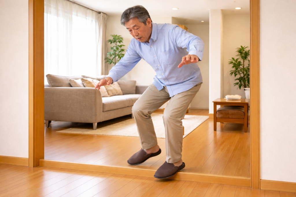 ご自宅内での転倒事故は、実は階段だけでなく、リビングのちょっとした段差や、滑りやすい浴室でも多く発生しています。