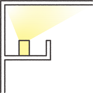 上方の広がり感を強調するのに効果的で高級感を演出したり、天井を高く見せる効果もあります。