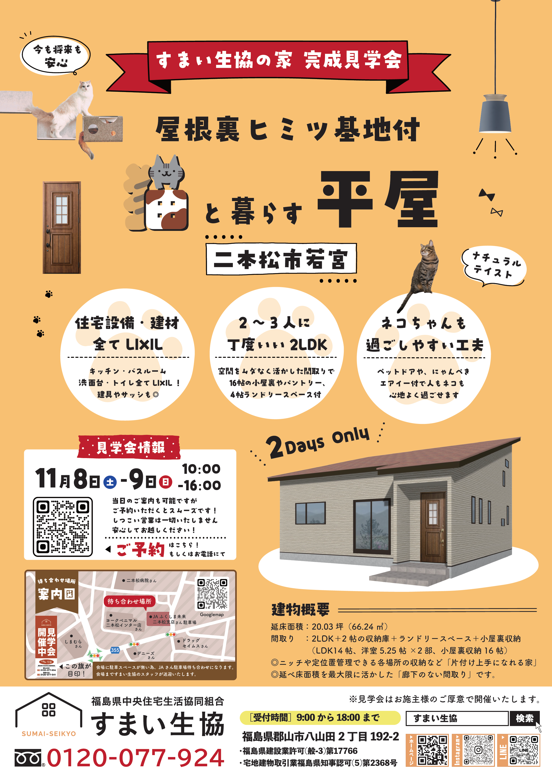 お知らせイベント【郡山本店】11月8日・9日二本松市にて完成見学会を開催! 2025 10.06 イベント 【郡山本店】11月8日・9日二本松市にて完成見学会を開催! こんにちは! すまい生協 郡山本店です。 11月8日(土)・9日(日)に二本松市若宮にて平屋の完成見学会を開催いたします。 詳細は下記ボタンをクリックください! 前の記事を見る 一覧に戻る 次の記事を見る