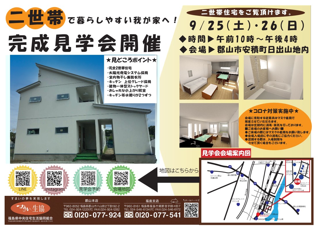 9月25日㈯・9月26日㈰郡山市安積町にて完成見学会を開催致します。
