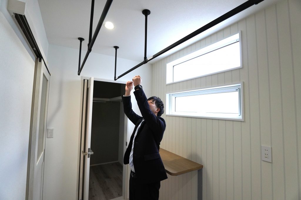 洗濯機から取り出した衣類をその場で干して、そのまま隣のクローゼットへ。