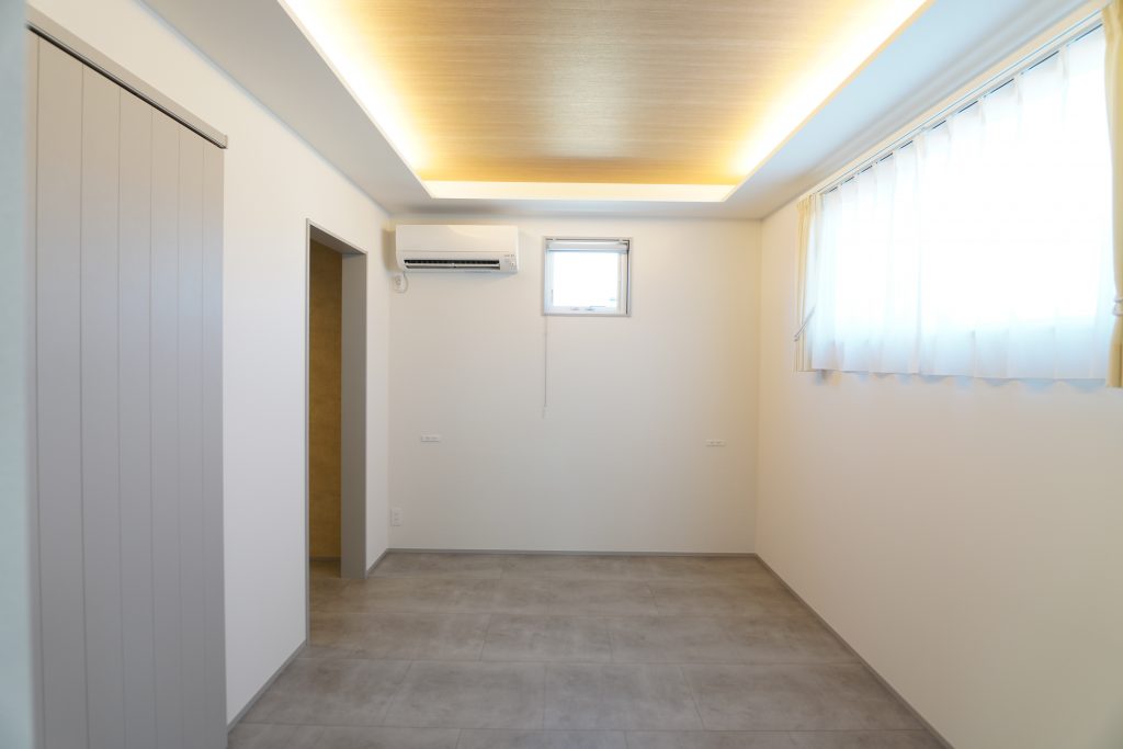 2階 寝室: お休み前のリラックスタイムを演出する、素敵な間接照明付きです。