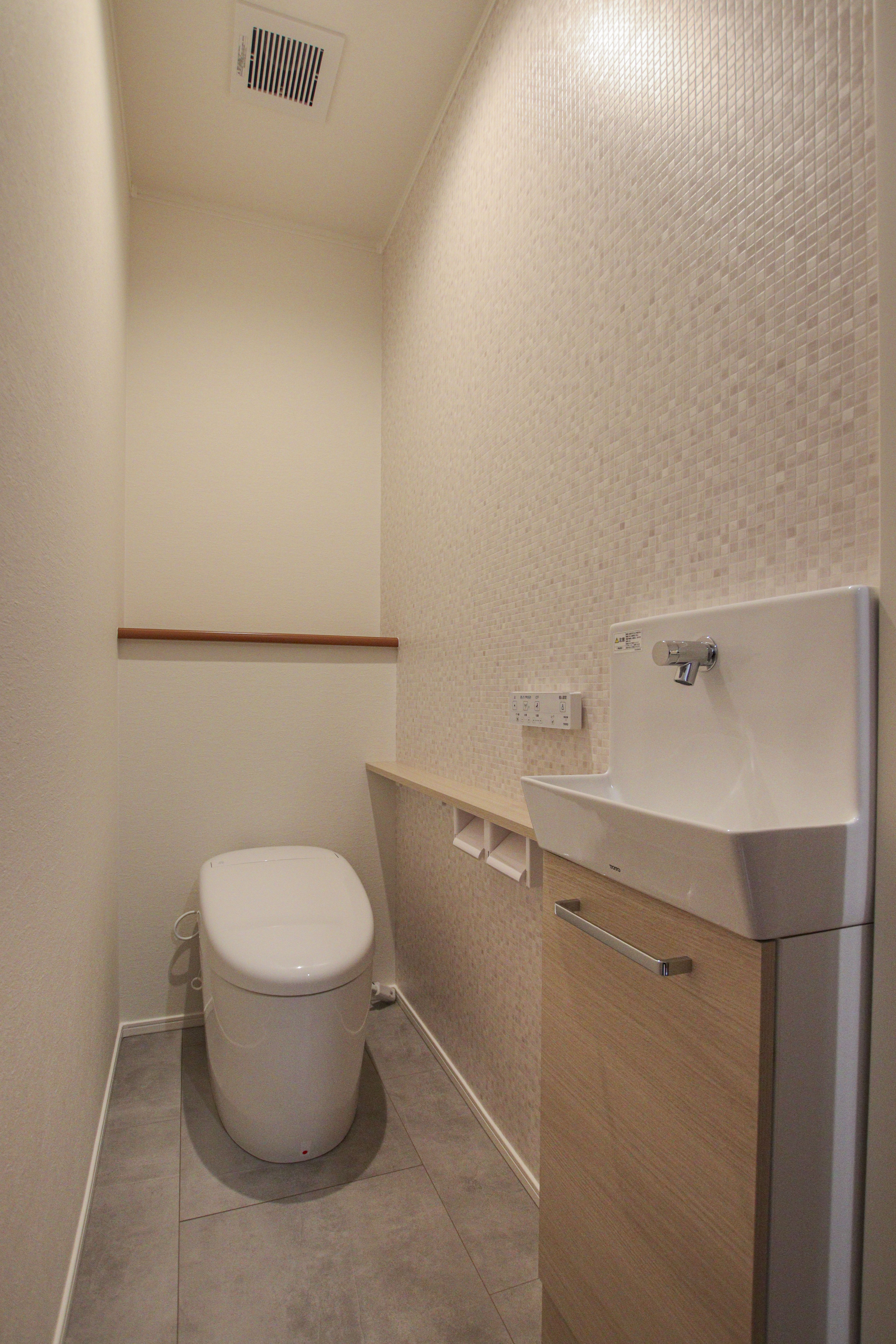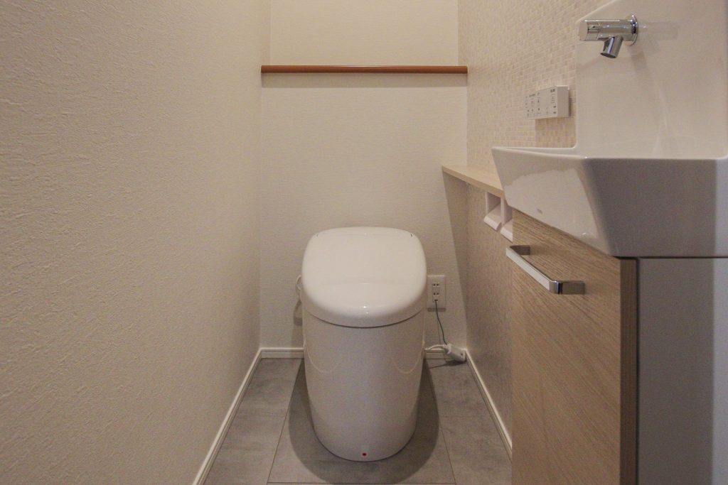 タンクレストイレはすっきりとした印象で、狭い空間での圧迫感を抑えております。