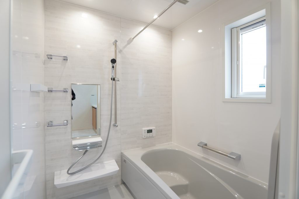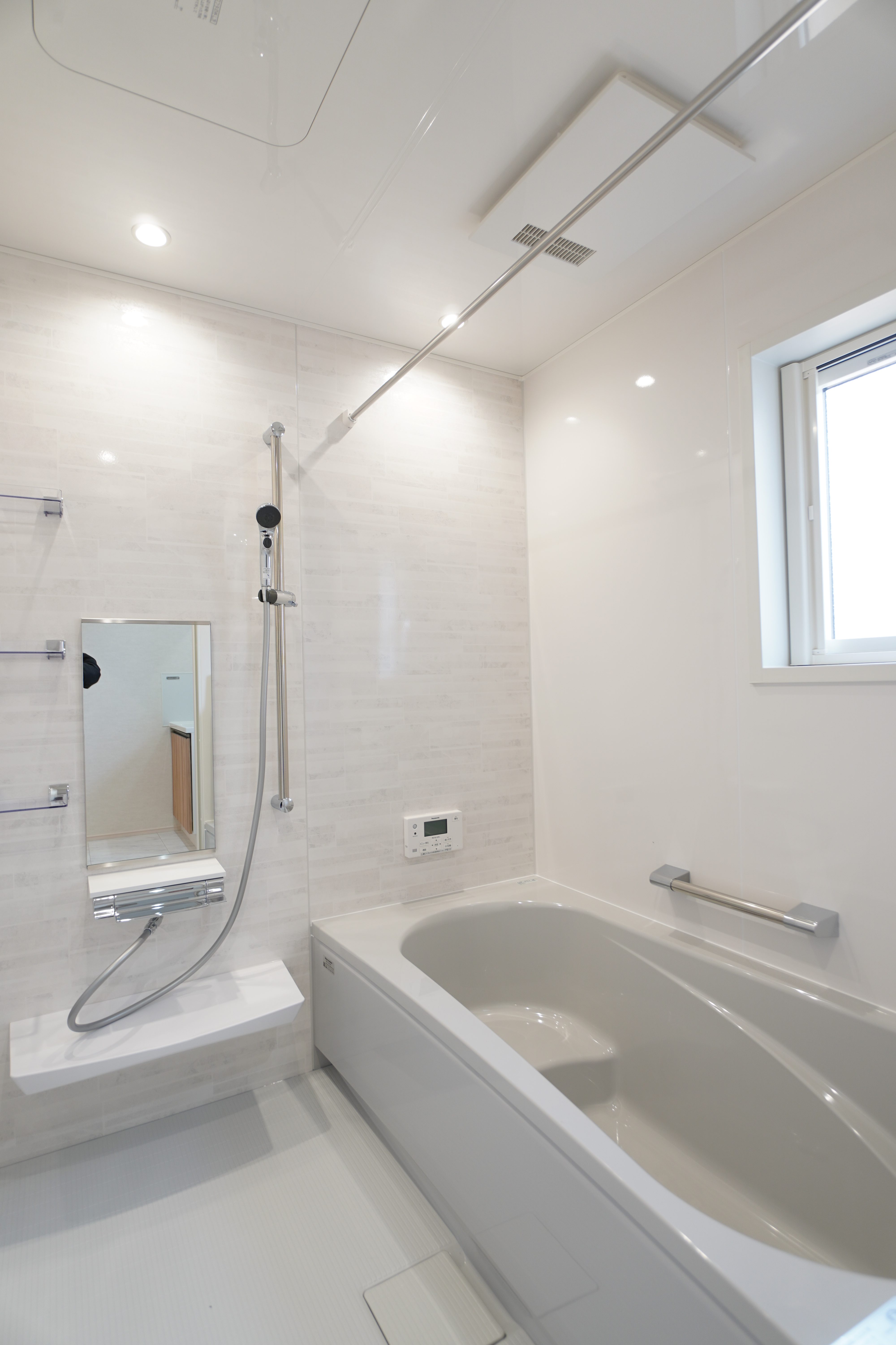 浴槽はライトグレー、洗い場はホワイトグレーとグレーで統一感があります。