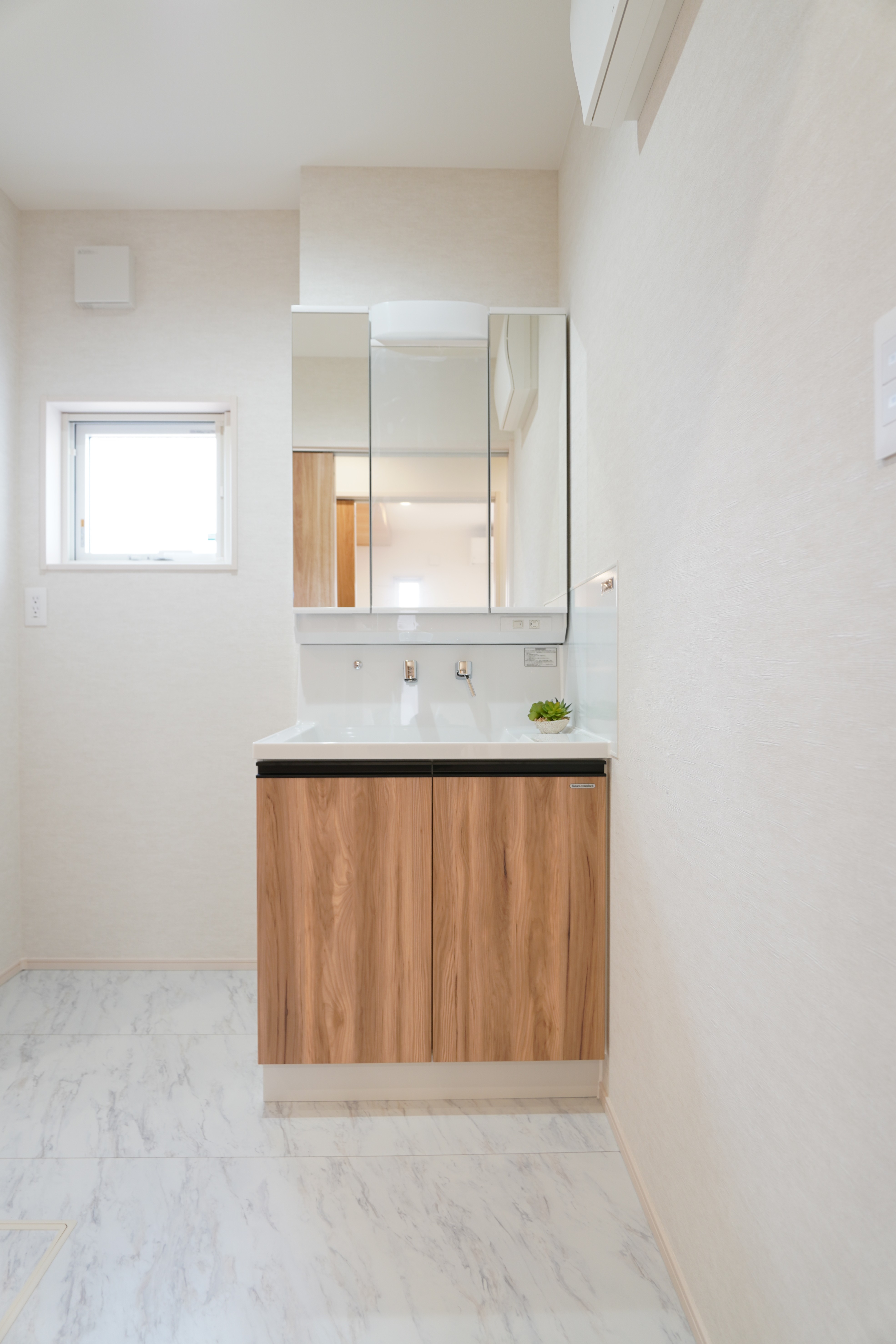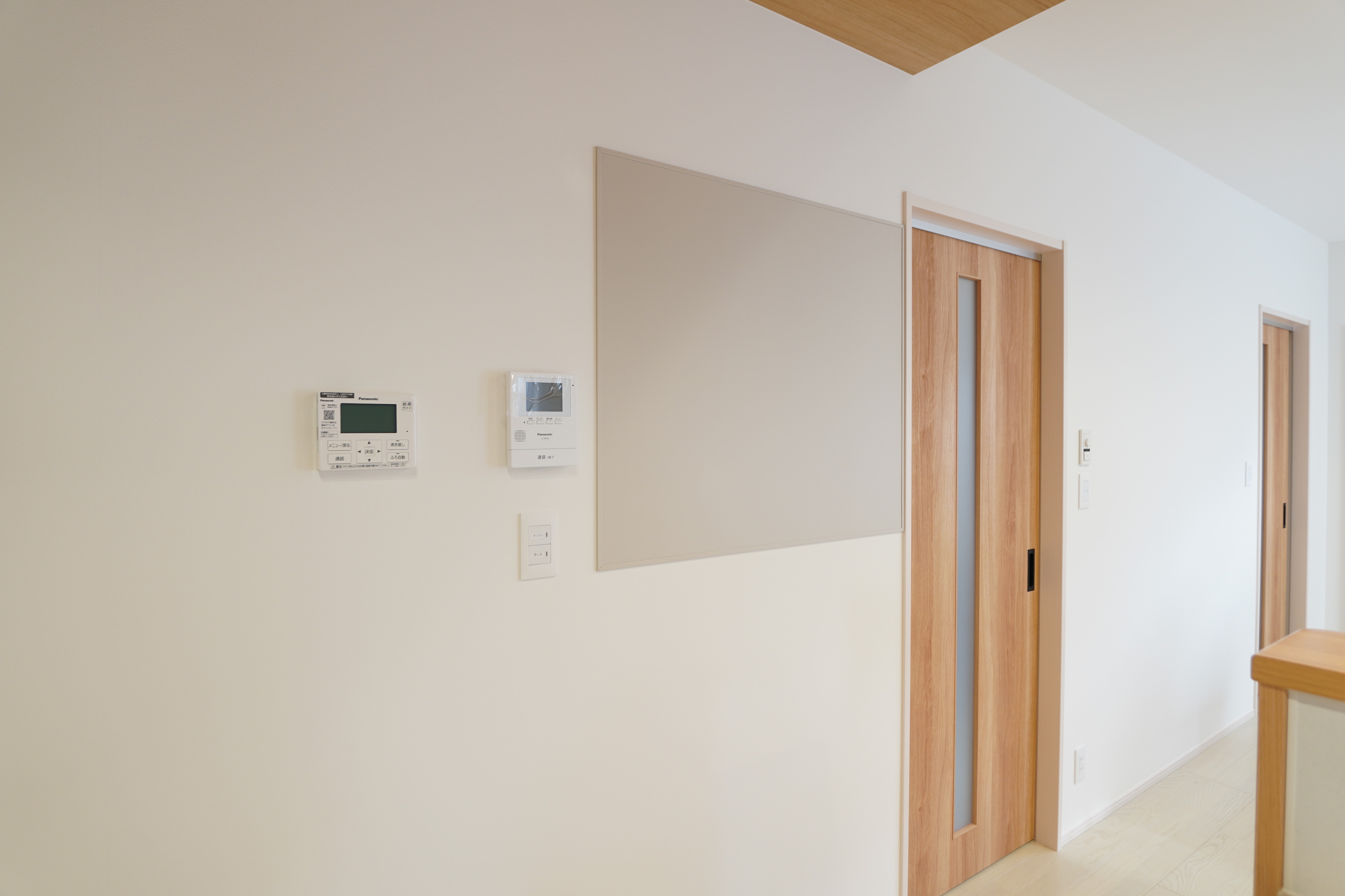 ブリックグレーのアクセントパネルでお洒落さと清潔感がアップ。