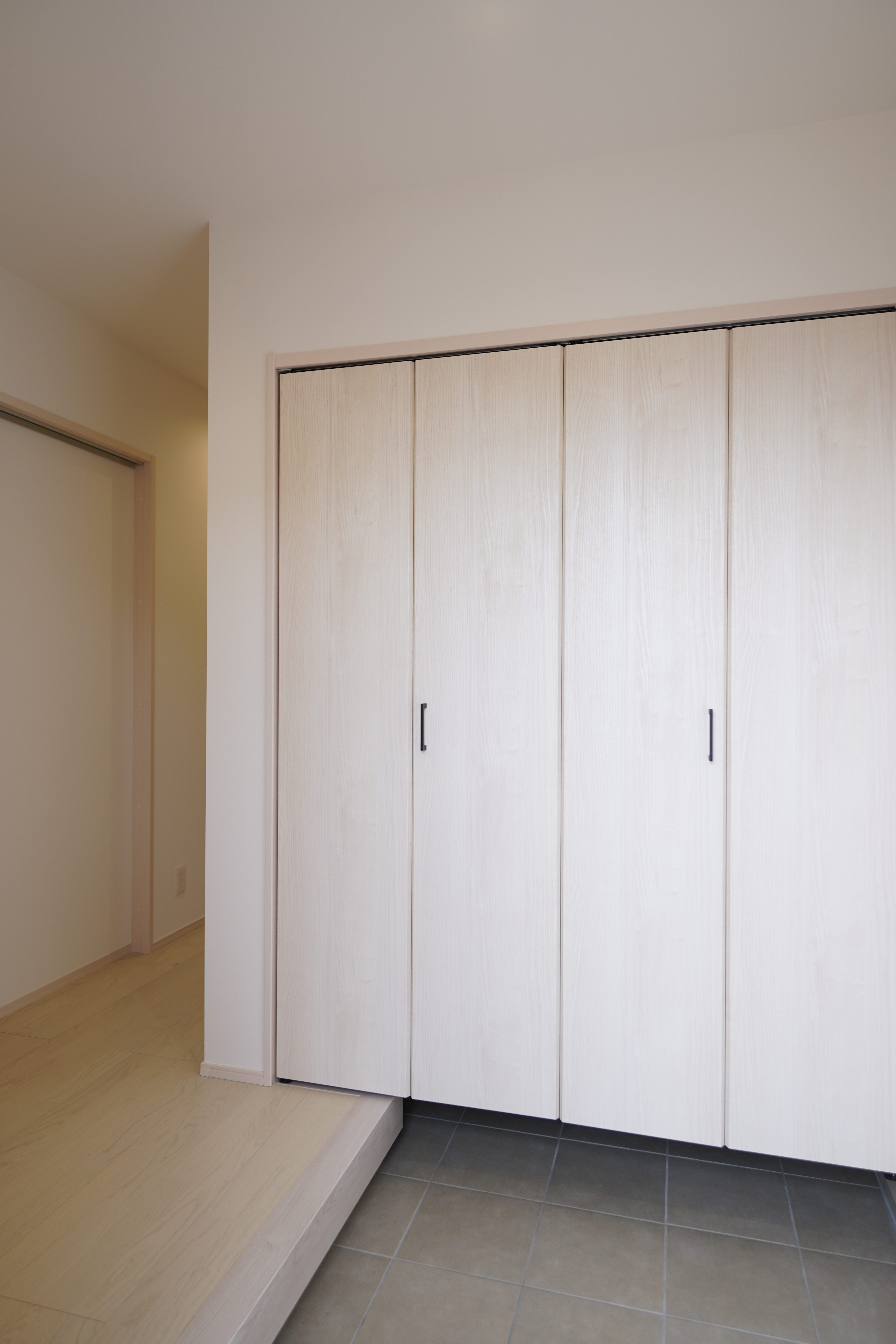 また、パイプハンガー付きでレインコートや傘を収納することもできます。
