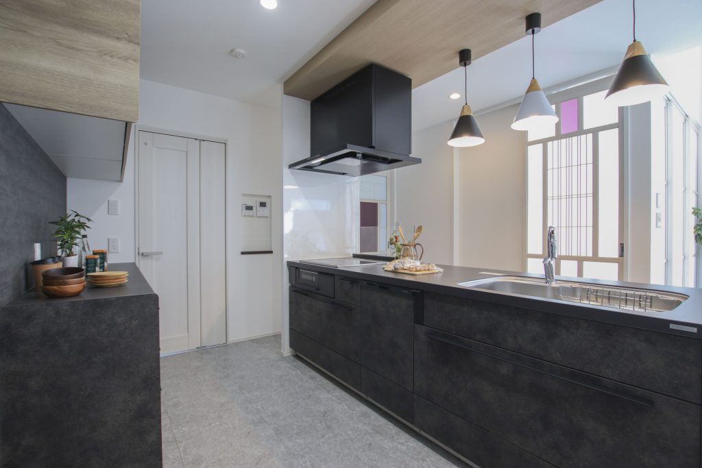 空間を引き締めるモダンなキッチン