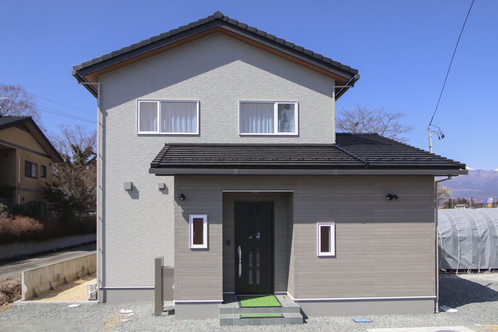 福島県本宮市に完成した、落ち着きのあるニュアンスカラーが印象的なお住まいです。