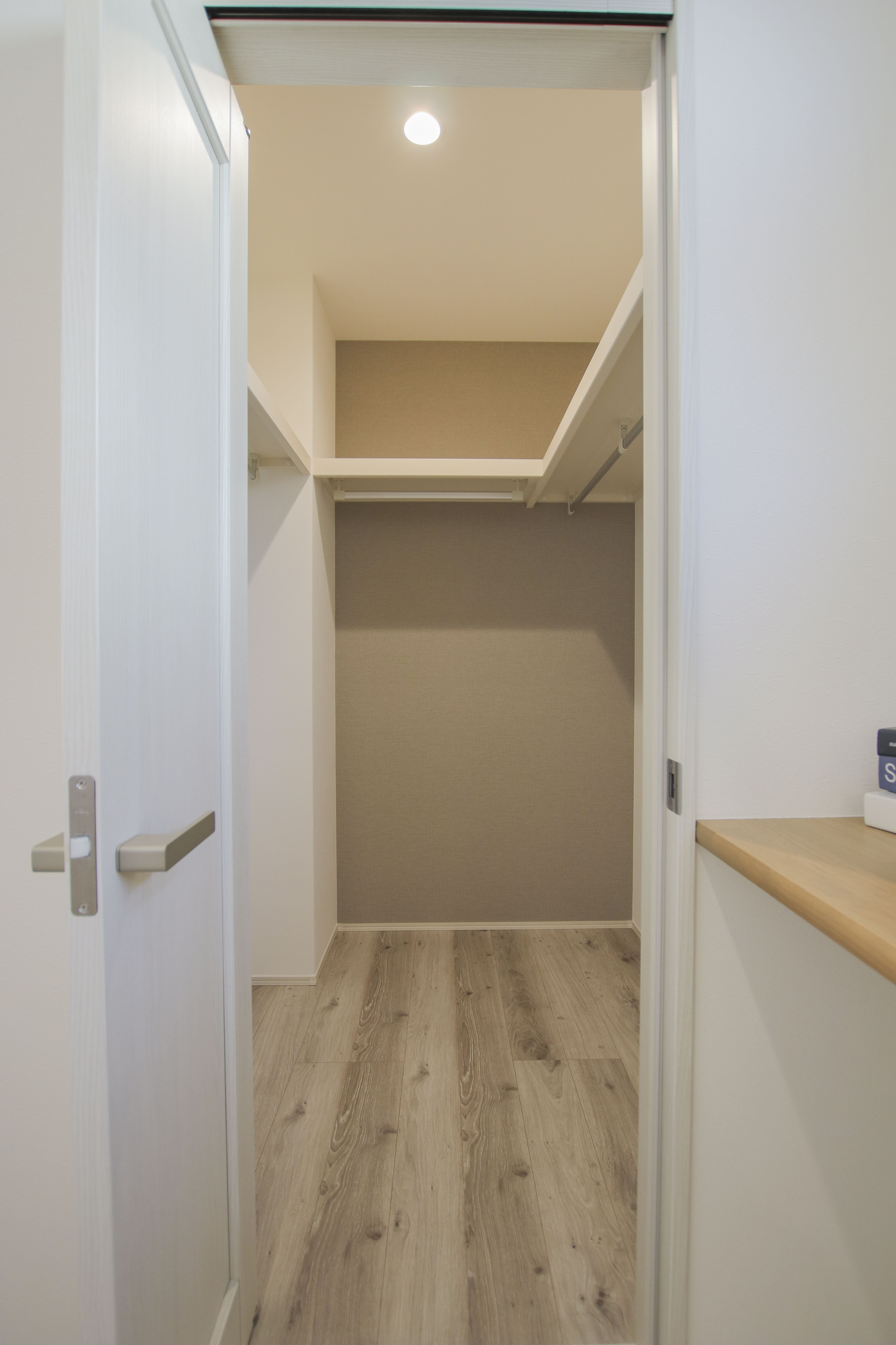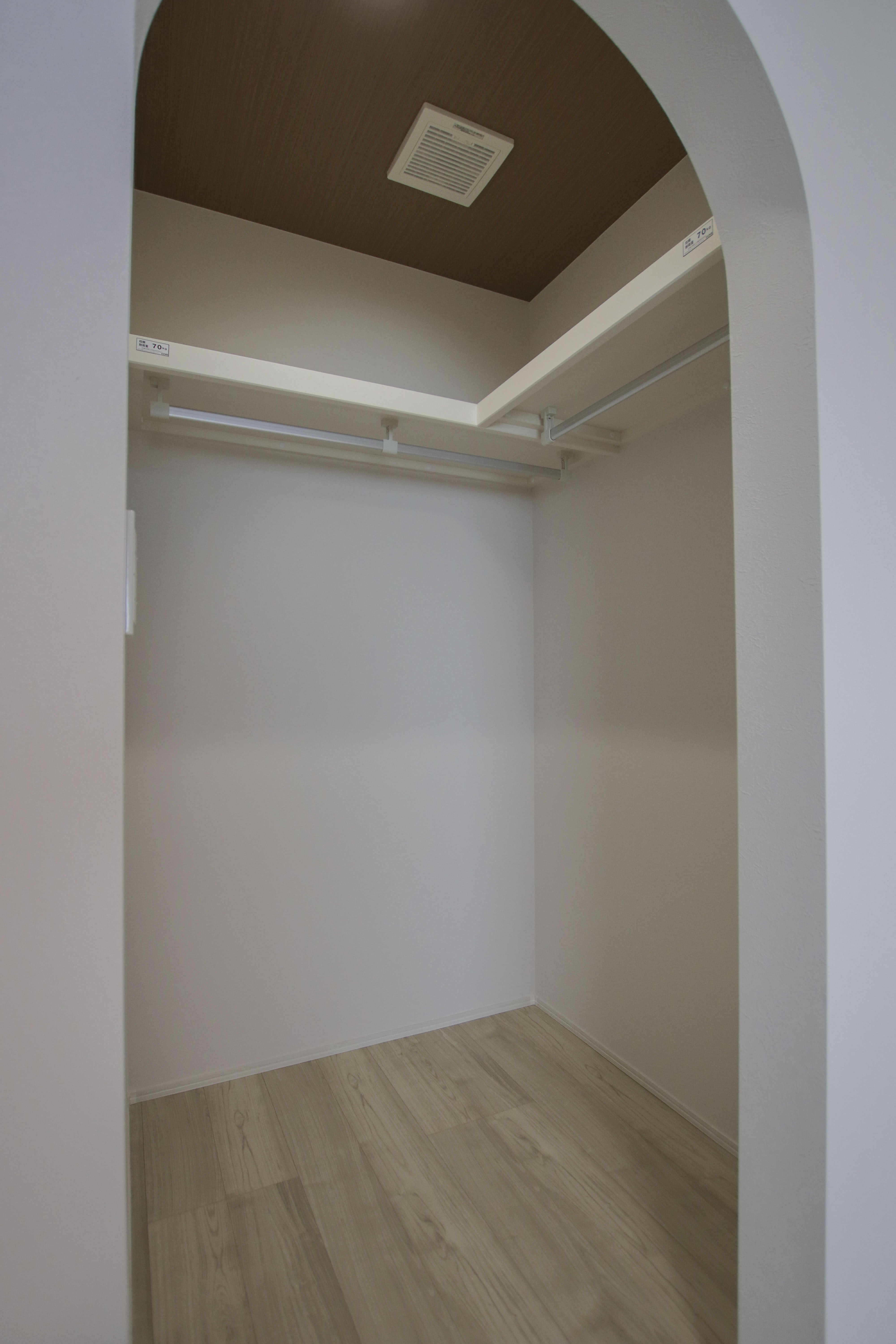 クローゼットの入り口に施した柔らかな曲線。