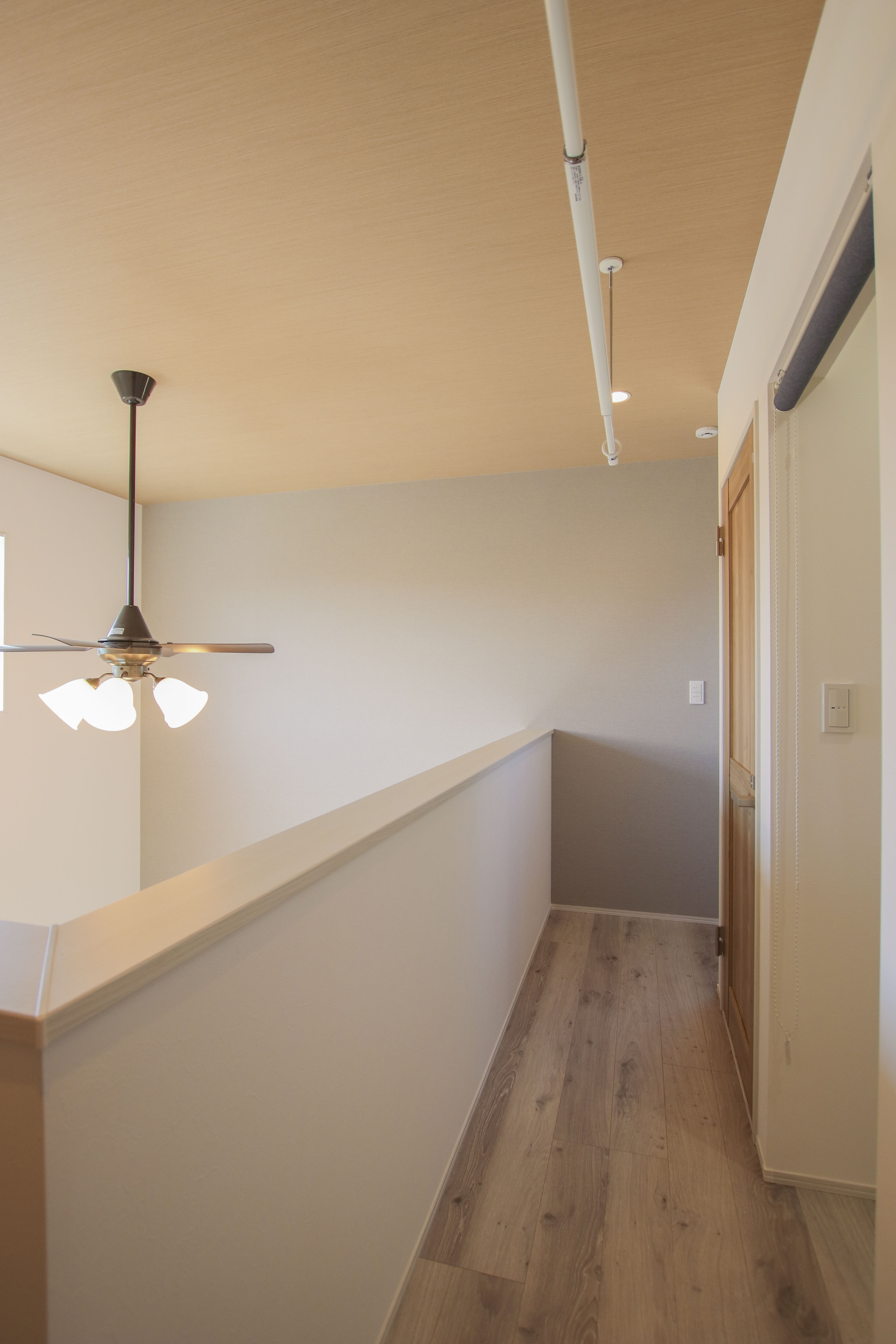 天井のファンが室温を均一に保ち、一年中薄着で過ごせるような、身体に優しい住環境を実現しました。