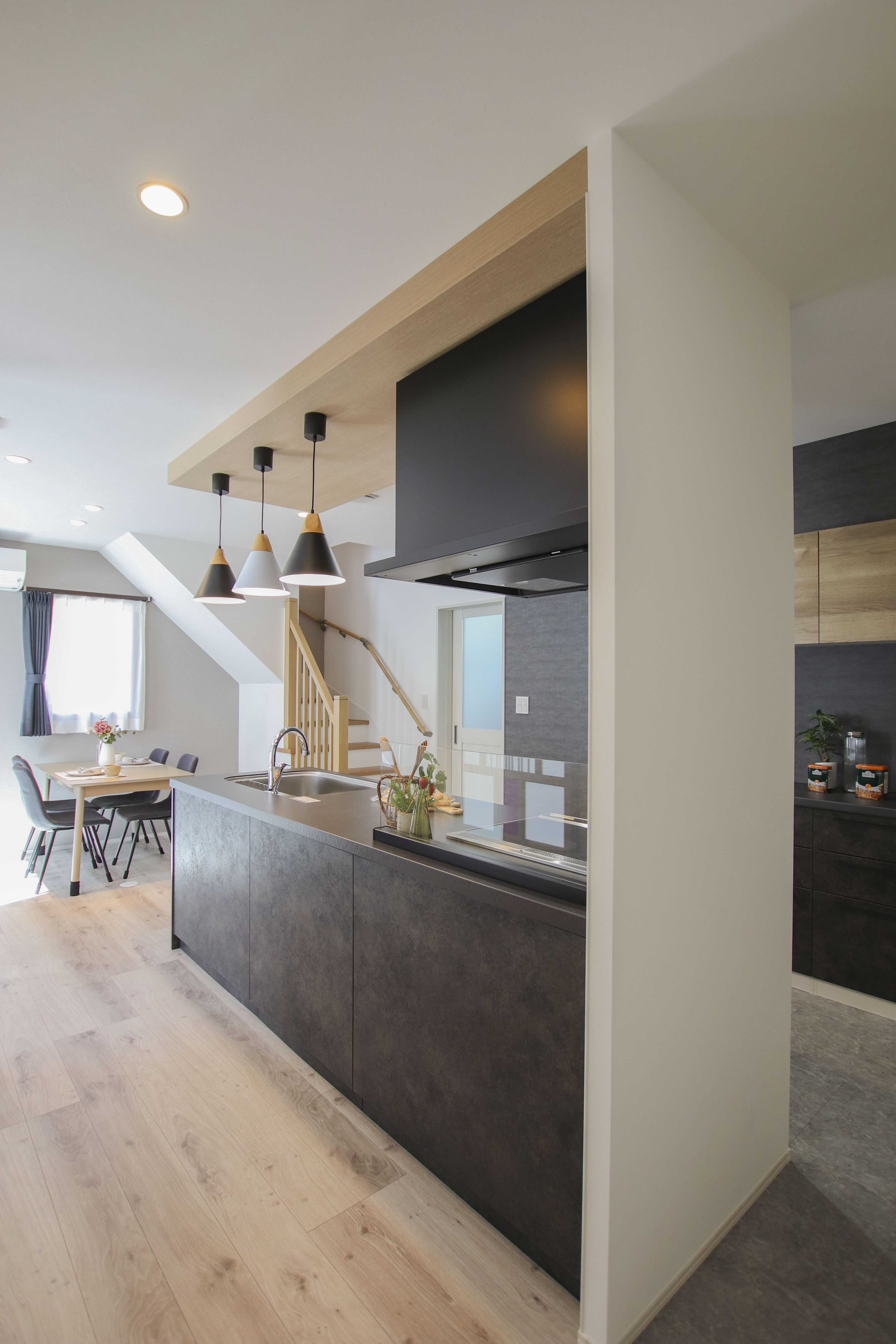 ダイニング横の階段には、視線が抜ける軽やかな手摺をセレクト。