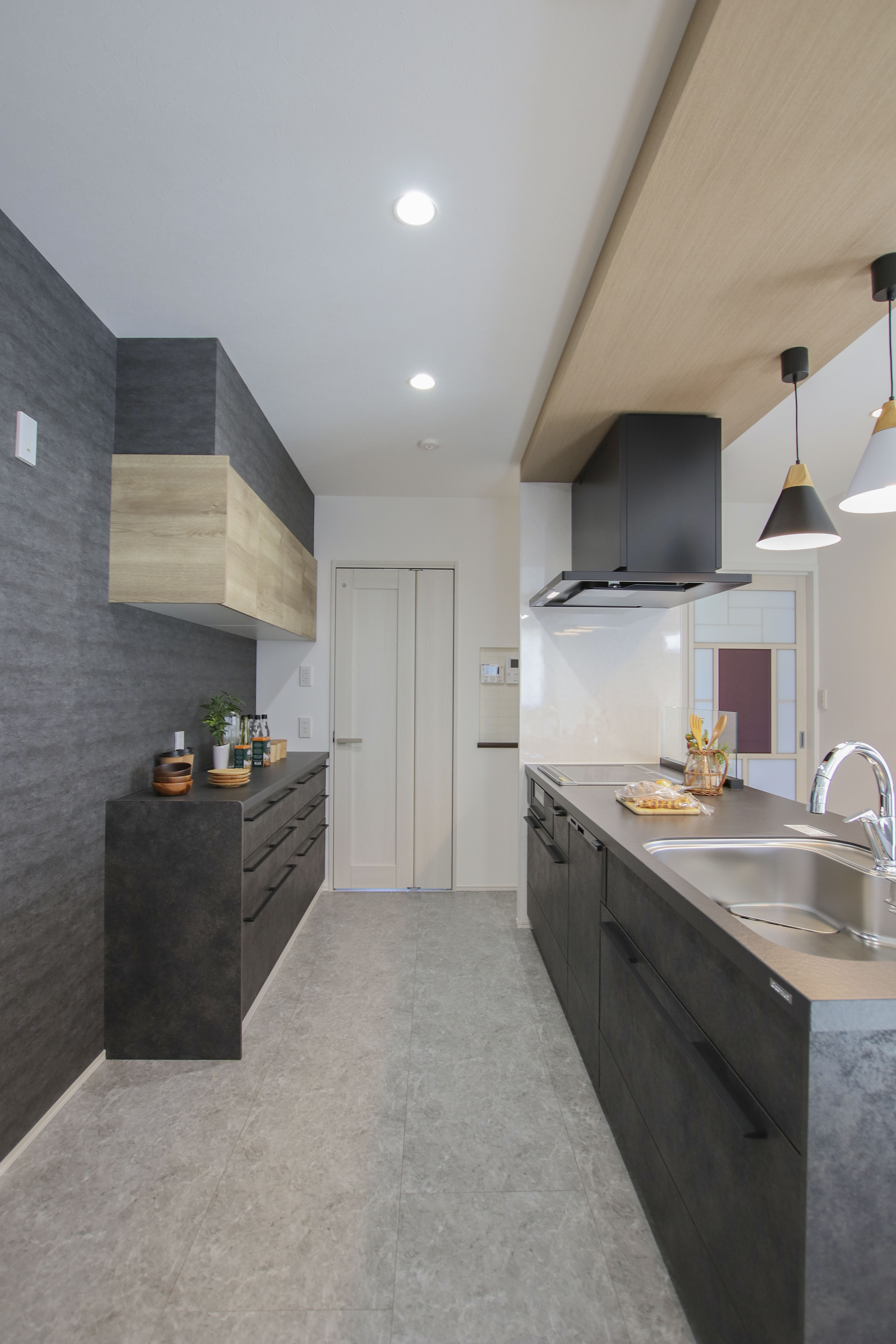 玄関から入り、パントリーを通り抜けてそのままキッチンへ。