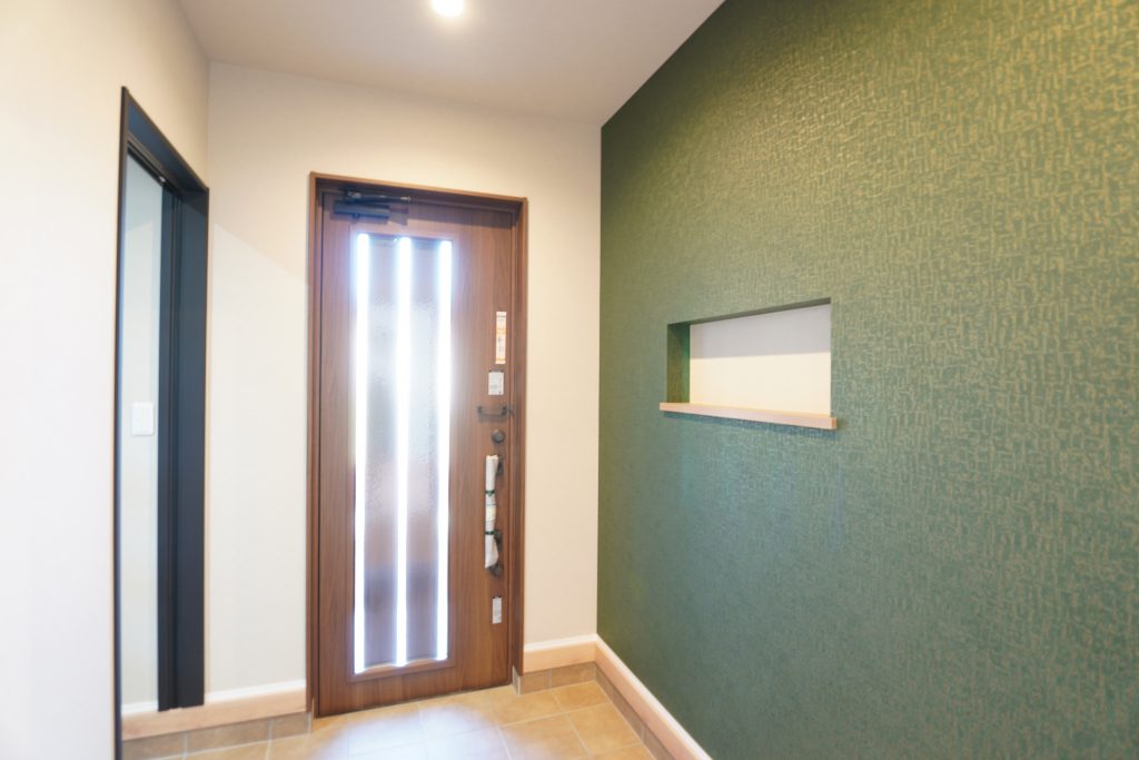 玄関の扉を開けると、お気に入りの小物を飾れる可愛らしいニッチが家族やゲストを優しく迎えます。