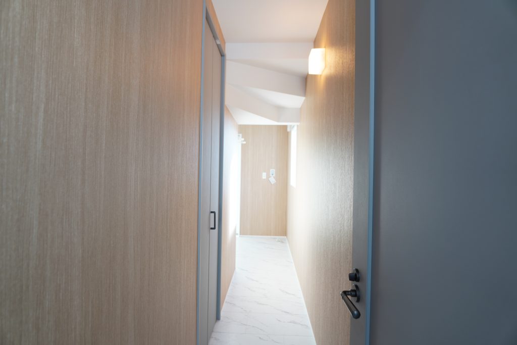 このお住まいの廊下は、単なる移動スペースではなく、暮らしをスムーズに整える重要な役割を担っています。