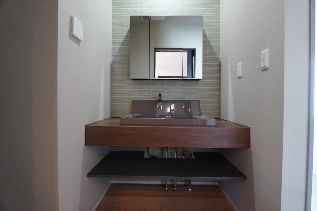 タイル調のアクセントと木目調のカウンターが調和し、毎朝の身支度を特別な時間に変えてくれます。