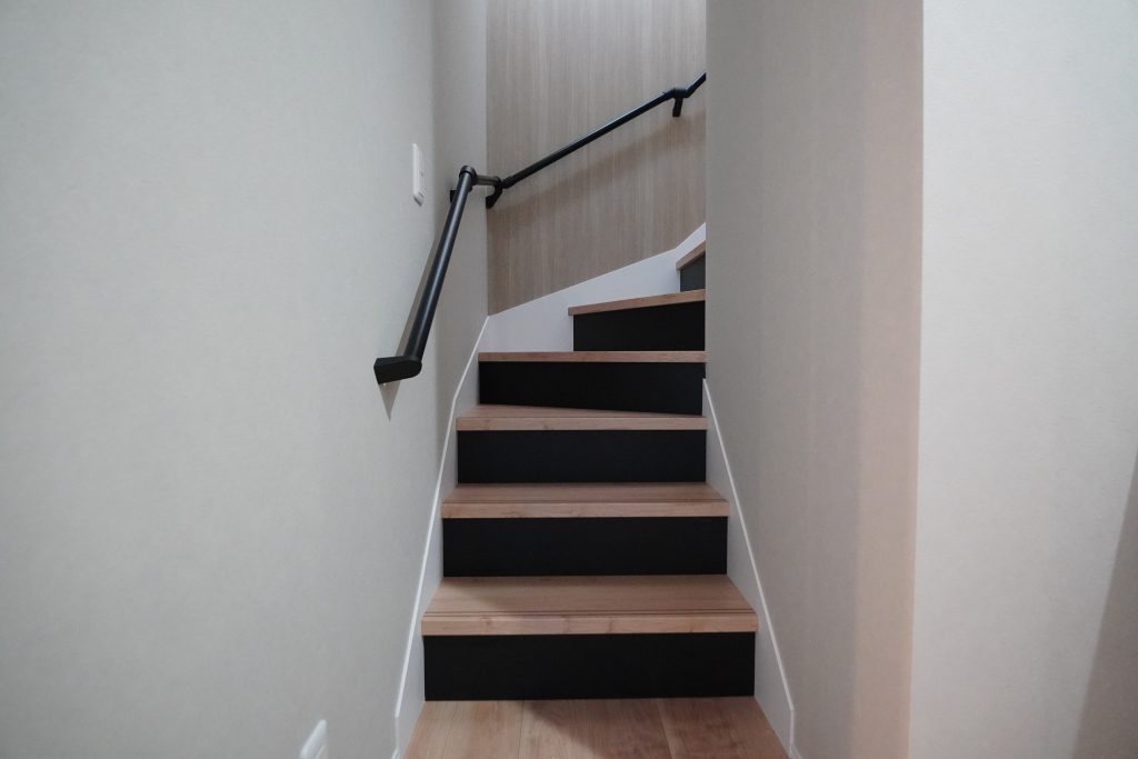 階段やトイレに隣接する洗面台は、リクシルの「カスタムバニティ」を使った造作風の仕上げです。