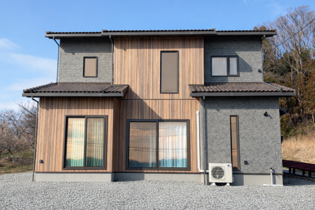 お住まいの顔となる外観は、異なる質感の壁材を巧みに貼り分けることで、奥行きのある表情豊かなデザインに仕上げました。