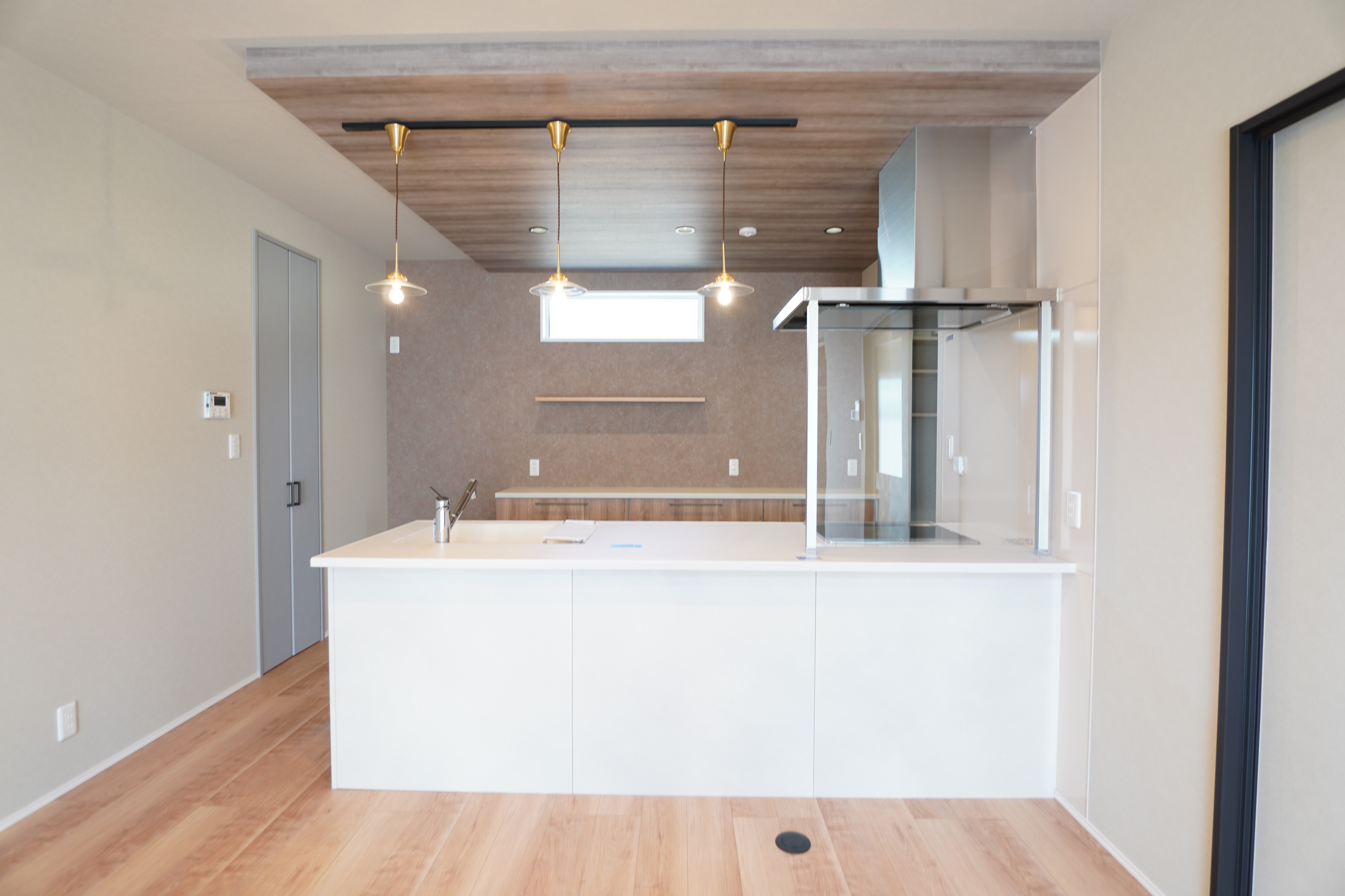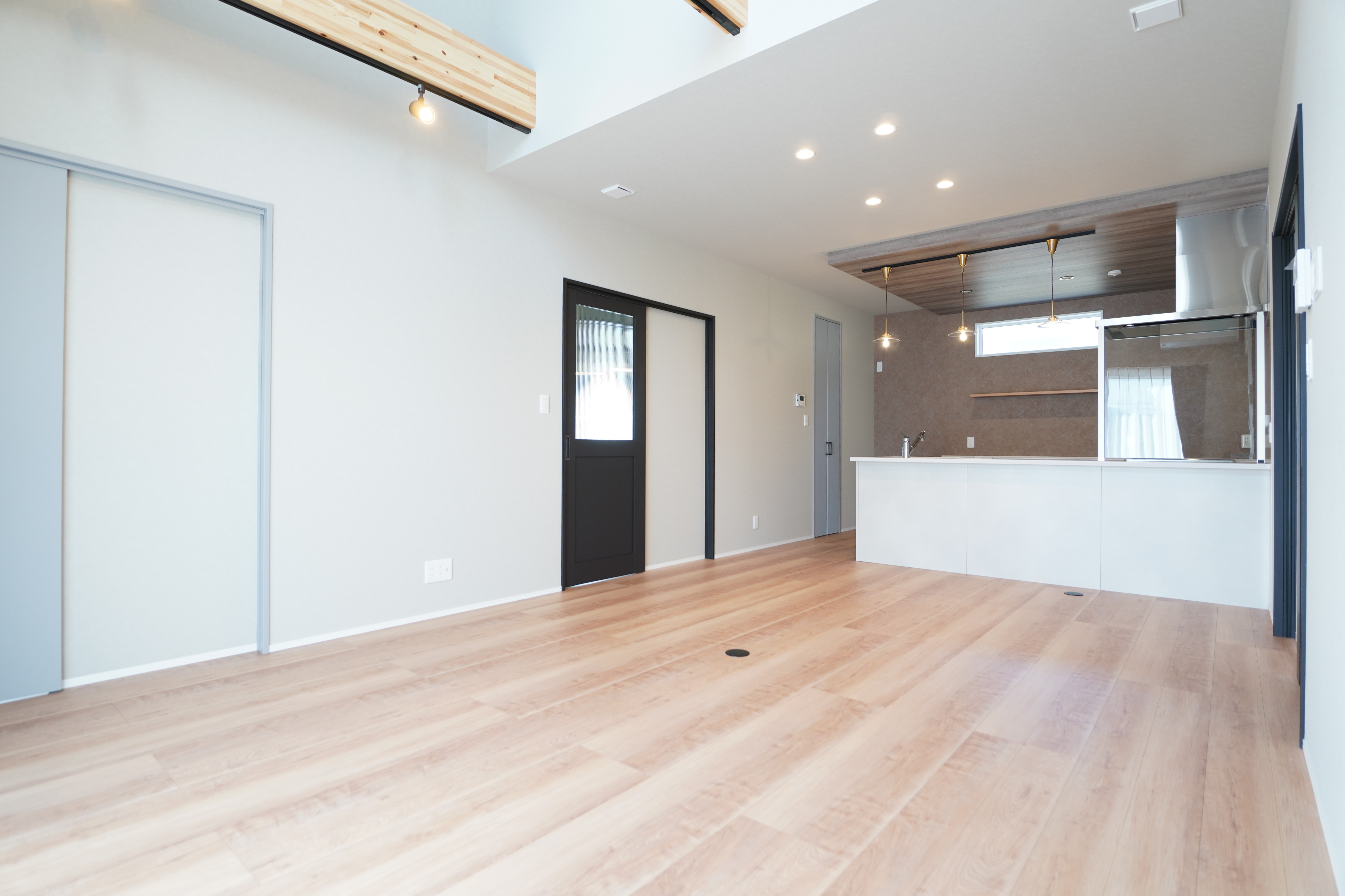 足元にはメープル色の柔らかな質感の床材が広がり、素足でも心地よい空間が続きます。