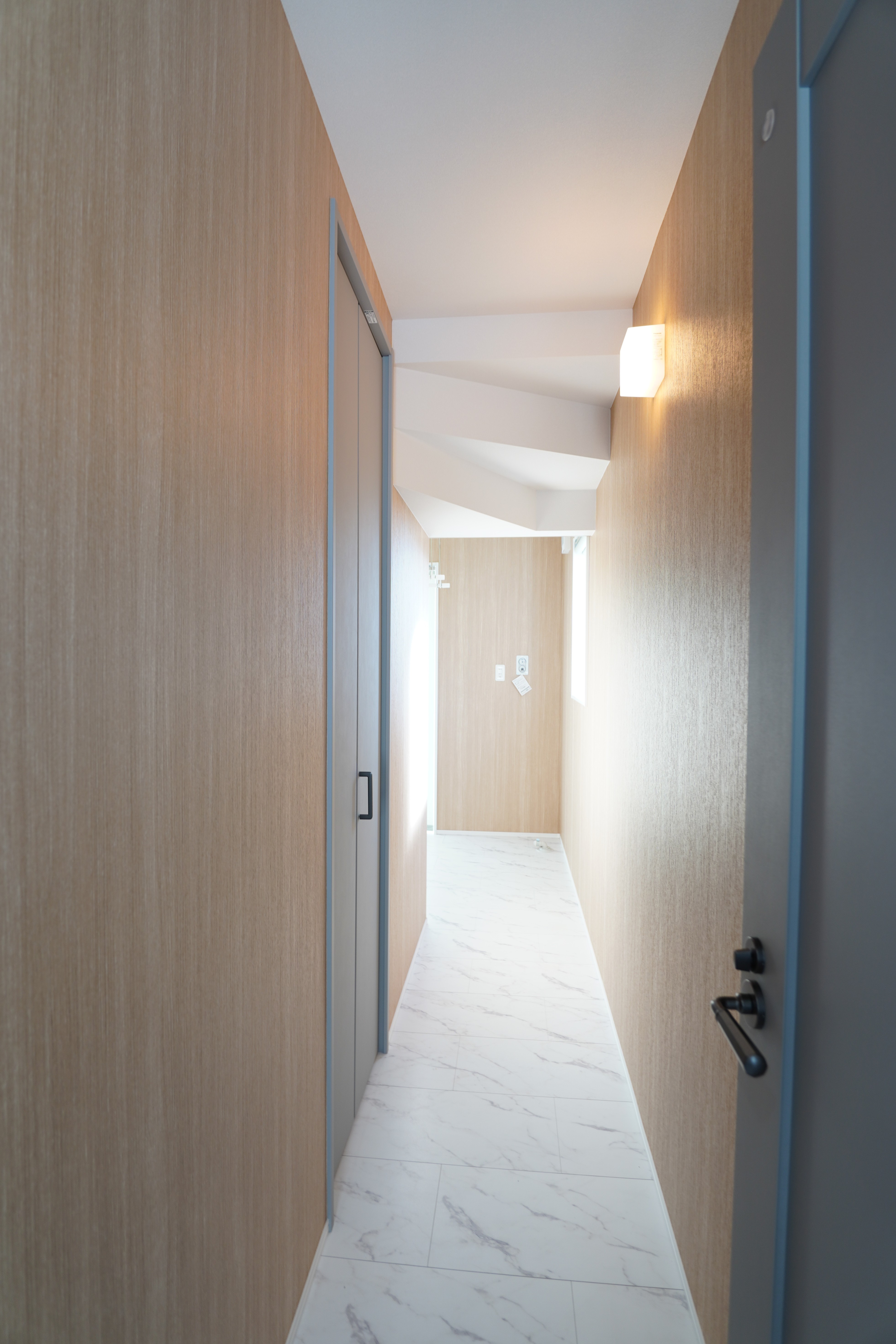 このお住まいの廊下は、単なる移動スペースではなく、暮らしをスムーズに整える重要な役割を担っています。
