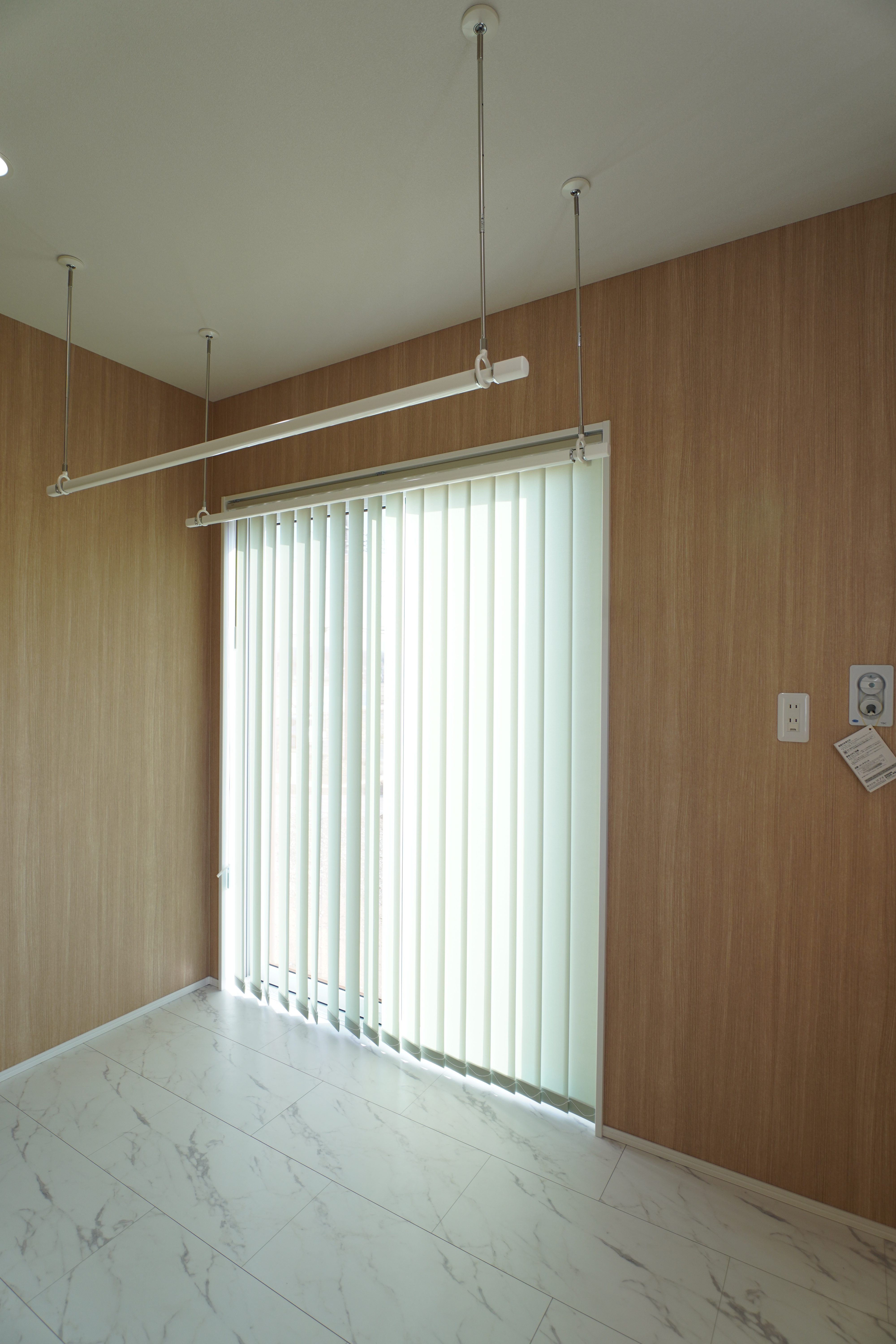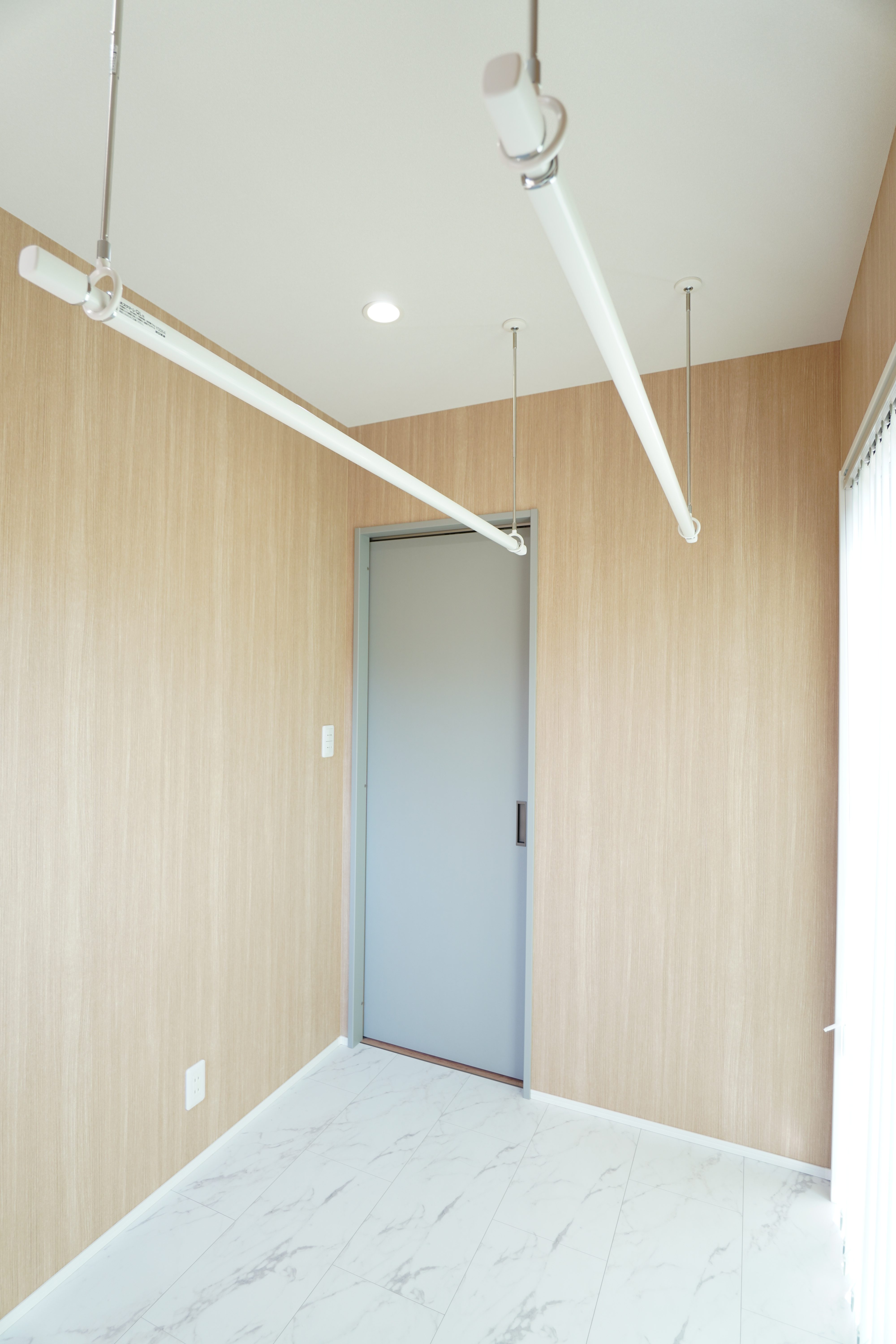 南側に配置したランドリールームは、バーチカルブラインドから入る光の調整がしやすく、室内干しでも驚くほどカラッと乾きます。