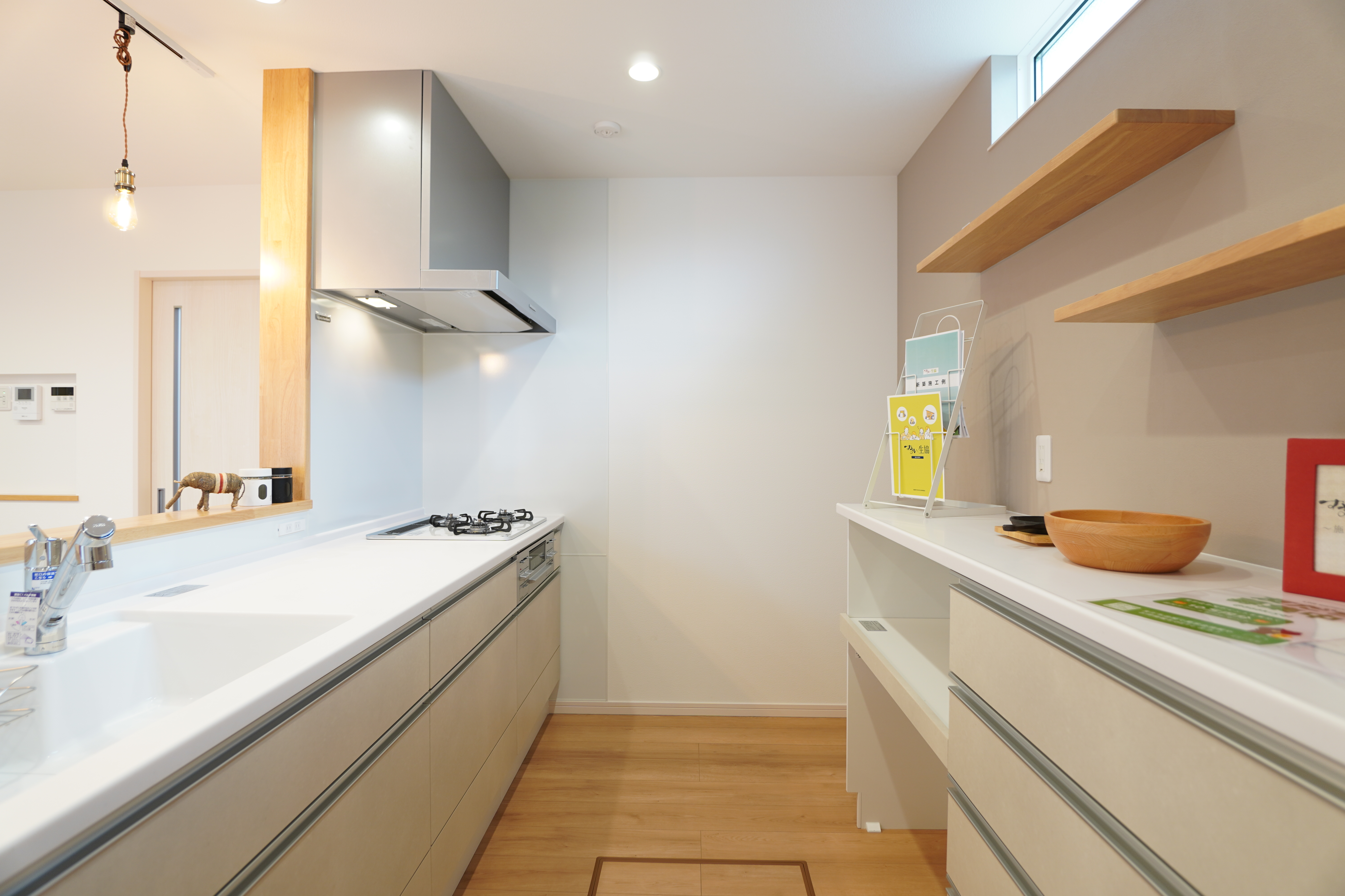 手元が隠れて、リビングからスッキリ見えるキッチン。